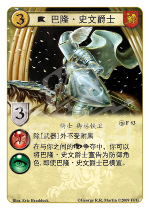 争夺中,你可以将巴隆·史文爵士宣告为防御角色,即使巴隆·史文爵士已横置。