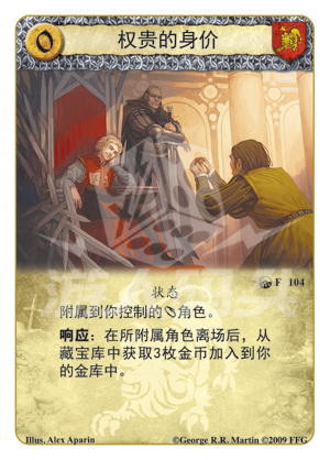 :在所附属角色离场后,从藏宝库中获取3枚金币加入你的金库中。