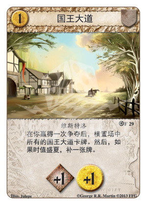 在你赢得一次争夺后,横置场中所有的国王大道卡牌。然后,如果时值盛夏,补一张牌。