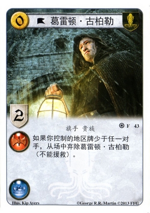 如果你控制的地区牌少于任一对手,从场中弃除葛雷顿·古柏勒(不能援救)。