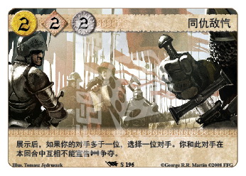 展示后,如果你的对手多于一位,选择一位对手,你和此对手在本回合中互相不能宣告