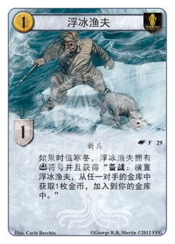 :横置浮冰渔夫,从任一对手的金库中获取1枚金币,加入到你的金库中。”