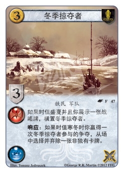 :如果时值寒冬时你赢得一次冬季掠夺者参与的争夺,从场中选择并弃除一张非独有卡牌。