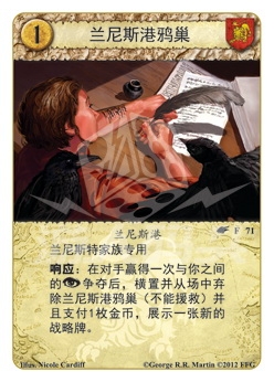 争夺后,横置并从场中弃除兰尼斯港鸦巢(不能援救)并且支付1枚金币,展示一张新的战略牌。