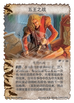 :在本回合的统御阶段后,进入史诗阶段。每位玩家可以发起一次他/她所选择的争夺。代替常规的争夺效果,任何在争夺中作为守方失利的玩家必须随机选择他/她的下一张战略牌。(直到史诗阶段结束,将此卡牌放置在你的战略牌组旁。)