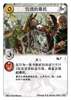功能说明 在你为一张卡牌或效果能力支付3枚或更多的金币后,横置饥饿的暴民。