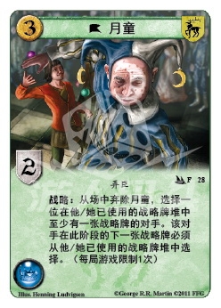 :从场中弃除月童,选择一位在他/她已使用的战略牌堆中至少有一张战略牌的对手。该对手在此阶段的下一张战略牌必须从他/她已使用的战略牌堆中选择。(每局游戏限制1次)
