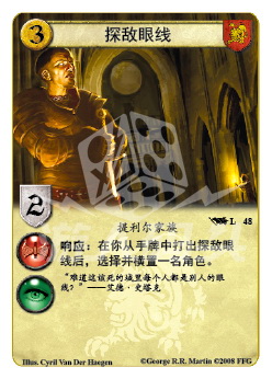 :在你从手牌中打出探敌眼线后,选择并横置一名角色。