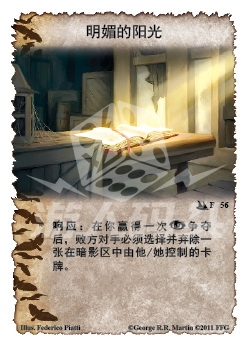 功能说明 响应: 在你赢得一次阴谋争夺争夺后,败方对手必须选择并弃除一张在暗影区中由他/她控制的卡牌。