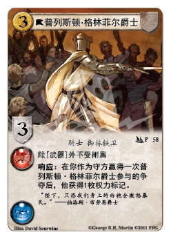 :在你作为守方赢得一次普列斯顿·格林菲尔爵士参与的争夺后,他获得1枚权力标记。