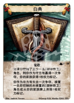 你作为攻方每失去一次争夺,横置一名你控制的未横置的[御林铁卫]角色或从你的家族牌上弃除1枚权力标记。
