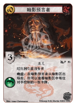 响应:在暗影预言者从暗影区出场后,你可以查看暗影区中每位对手控制的一张卡牌。