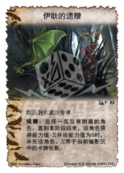 :选择一名没有附属的角色。直到本阶段结束,该角色获得能力值-X并当能力值为0时,杀死该角色。X等于当前暗影区中的卡牌张数。