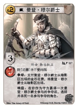 :在你作为守方赢得一次曼登·穆尔爵士参与的争夺后,选择并杀死一名参与争夺的角色。