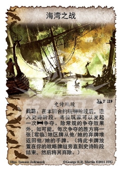 功能说明 战略:在本回合的统御阶段后,进入史诗阶段。每位玩家可以发起一次军事争夺争夺。除常规的争夺效果外,如可能,每次争夺的胜方将一张[君临]地区牌从他/她的弃牌堆返回他/她的手牌。(将此卡牌放置在你的战略牌组旁直到史诗阶段结束,然后将其弃除。)
