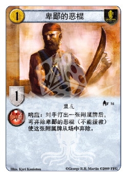 :对手打出一张附属牌后,可弃除卑鄙的恶棍(不能援救)使这张附属牌从场中弃除。