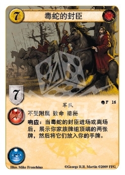 :当毒蛇的封臣进场或离场后,展示你家族牌组顶端的两张牌,然后将它们放入你的手牌。