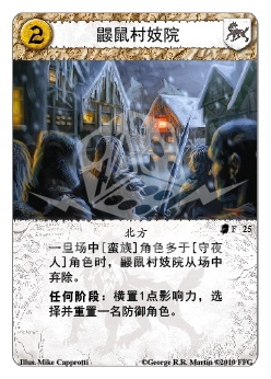 一旦场中[蛮族]角色多于[守夜人]角色时,鼹鼠村妓院从场中弃除。