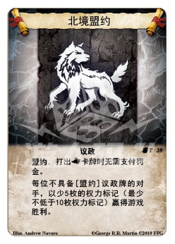 每位不具备[盟约]议政牌的对手,以少5枚的权力标记(最少不低于10枚权力标记)赢得游戏胜利。