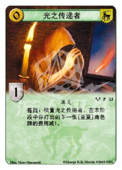 功能说明 备战:横置光之传递者,在本阶段中你打出下一张[亚夏]角色牌的费用减1。