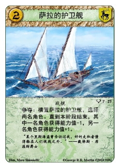 :横置萨拉的护卫舰,选择两名角色。直到本阶段结束,其中一名角色获得能力值-1,另一名角色获得能力值+1。