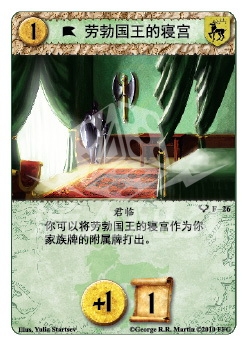 你可以将劳勃国王的寝宫作为你家族牌的附属牌打出。