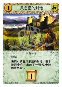 备战:横置风息堡的封地,在本阶段中你打出的下一张拜拉席恩家族卡牌的费用减1。