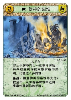 :横置伪神的柴堆并支付2枚金币,从你的弃牌堆中返回一张事件牌到你的手牌。