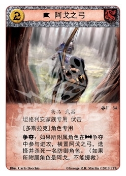 争夺中参与进攻,横置阿戈之弓,选择并杀死一名防御角色。(如果所附属角色是阿戈,不能援救)