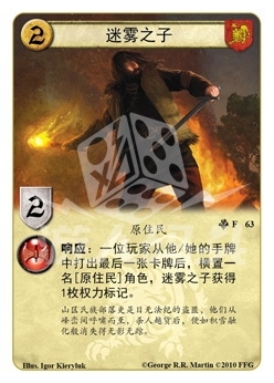 功能说明 响应:一位玩家从他/她的手牌中打出最后一张卡牌后,横置一名[原住民]角色,迷雾之子获得1枚权力标记。