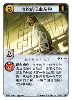 功能说明 限制响应:在卡牌从一位玩家的家族牌组中弃除后,横置攸伦的混血杂种或横置一张[战舰]地区牌,从场中选择并弃除一张与其相同的卡牌。(每个回合限制1次限制响应)