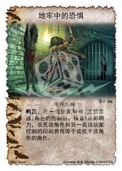 :在一位玩家取得[波顿家族]角色的控制后,横置1点影响力,杀死该角色和另一名该玩家控制的印刷费用等于或低于该角色的角色。