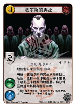 :在魁尔斯的男巫从暗影区出场后,选择一张印刷费用等于或低于暗影区卡牌数的地区牌。将该地区牌返回其拥有者的手牌。