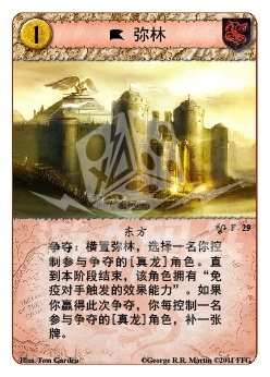 :横置弥林,选择一名你控制参与争夺的[真龙]角色。直到本阶段结束,该角色拥有“免疫对手触发的效果能力”。如果你赢得此次争夺,你每控制一名参与争夺的[真龙]角色,补一张牌。