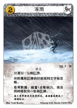 任何阶段:横置1点影响力,将冻雨转移到另一张地区牌。