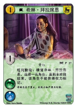 :横置希琳·拜拉席恩,选择一名角色。直到本阶段结束,该角色不能获得权力标记。