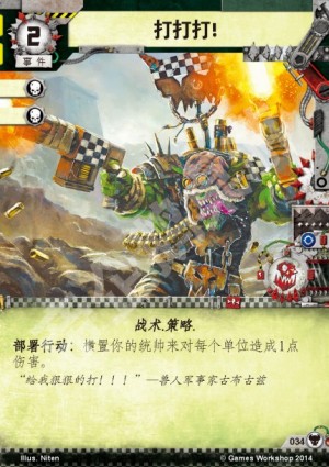 文本部署行动:横置你的统帅来对每个单位造成1点伤害。