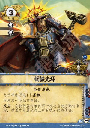 :在被附属的单位因一次攻击被分配伤害后,横置本附属来防止所有被分配的伤害。