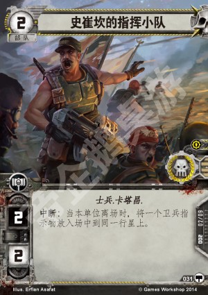 文本中断:当本单位离场时,将一个卫兵指示物放入场中到同一行星上。