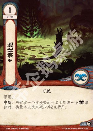 :当你在一个被侵染的行星上部署一个泰伦虫族单位时,横置本支援来减少其2点费用。