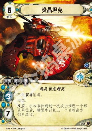 反应:在本单位通过一次攻击摧毁一个部队单位后,横置本行星上一个目标敌方部队单位。