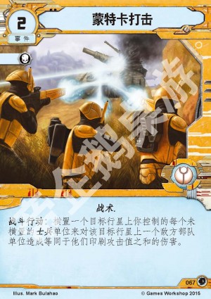 单位来对该目标行星上一个敌方部队单位造成等同于他们印刷攻击值之和的伤害。