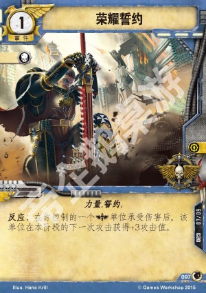 文本反应:在你控制的一个星际战士单位承受伤害后,该单位在本阶段的下一次攻击获得+3攻击值。