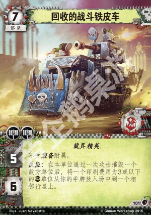 :在本单位通过一次攻击摧毁一个敌方单位后,将一个印刷费用为3或以下的兽人单位从你的手牌放入场中到一个相邻行星上。