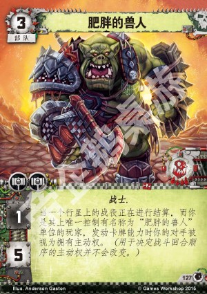 当一个行星上的战役正在进行结算,而你是其上唯一控制有名称为“肥胖的兽人”单位的玩家,发动卡牌能力时你的对手被视为拥有主动权。(用于决定战斗回合顺序的主动权并不会改变。)