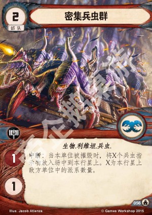 :当本单位被摧毁时,将X个兵虫指示物放入场中到本行星上。X为本行星上敌方单位中的派系数量。