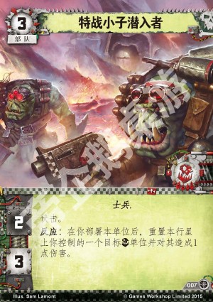 反应:在你部署本单位后,重置本行星上你控制的一个目标兽人单位并对其造成1点伤害。