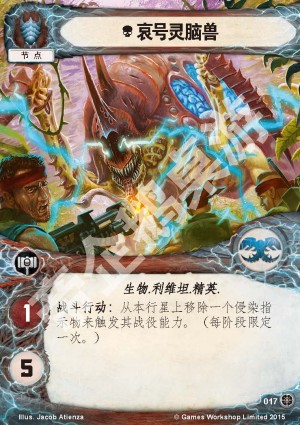 :从本行星上移除一个侵染指示物来触发其战役能力。(每阶段限定一次。)
