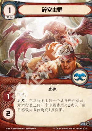 反应:在本行星上的一个战斗轮开始后,对本行星上的一个印刷费用为2或以下的目标敌方单位造成1点伤害。