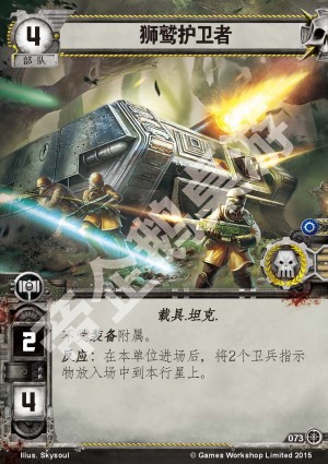 反应:在本单位进场后,将2个卫兵指示物放入场中到本行星上。